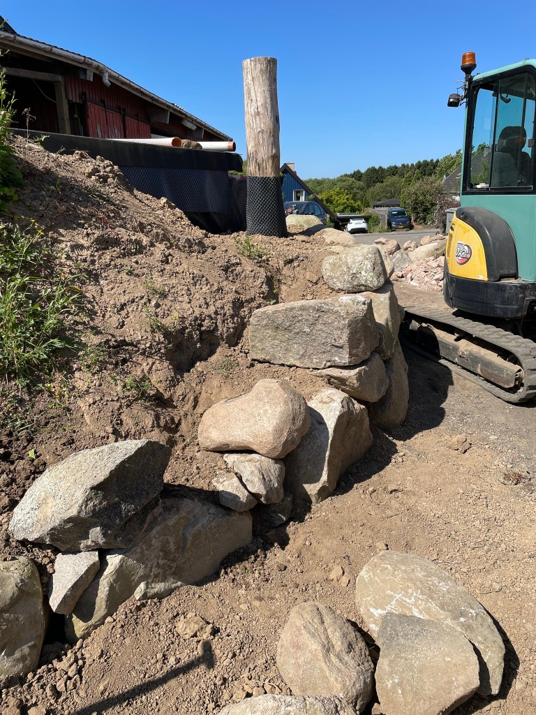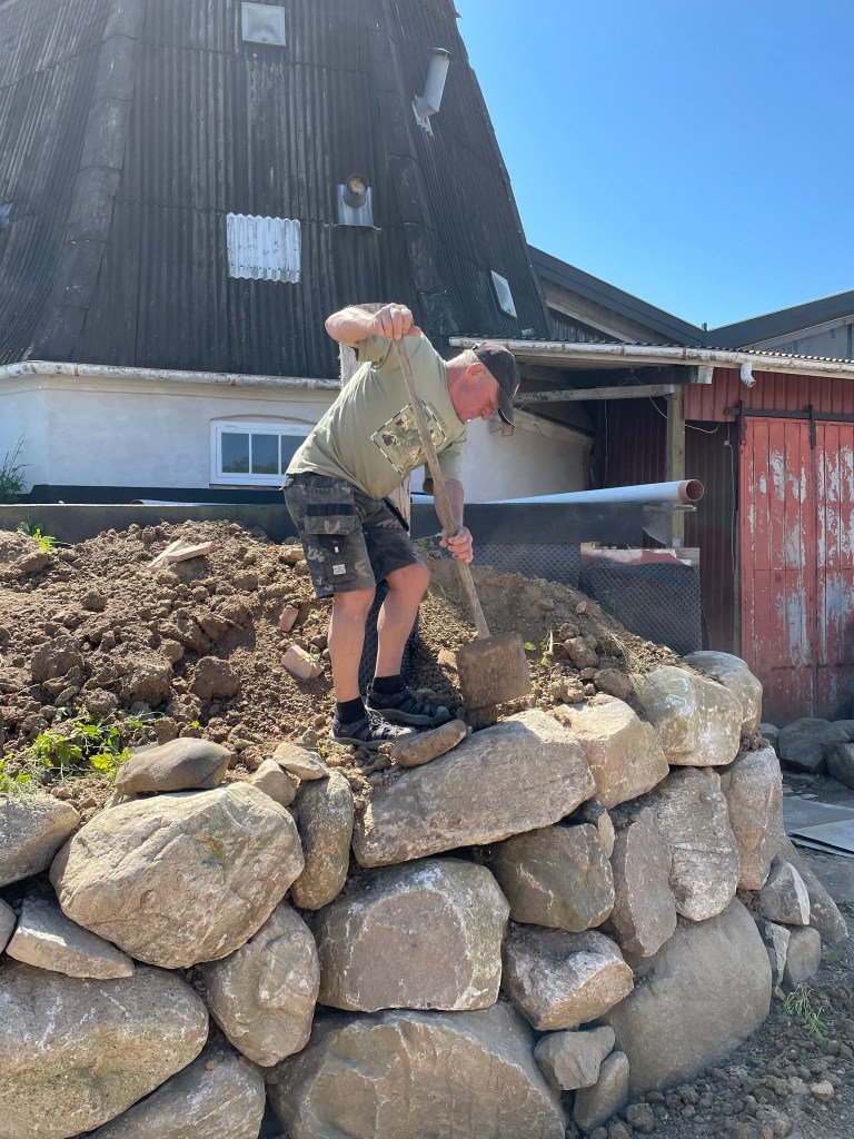 Her er lidt billeder af arbejdet med sten diget rundt om møllen