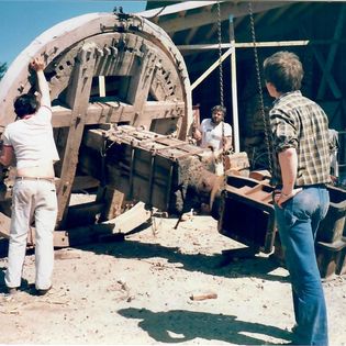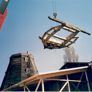 Dette er foto over arbejdet der for går på møllen for at få den tilbage til sit gamle eget jeg. Hør mere om møllen her